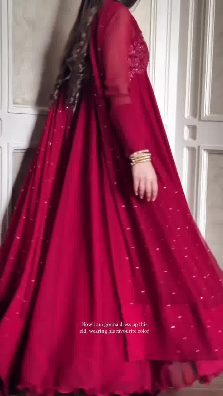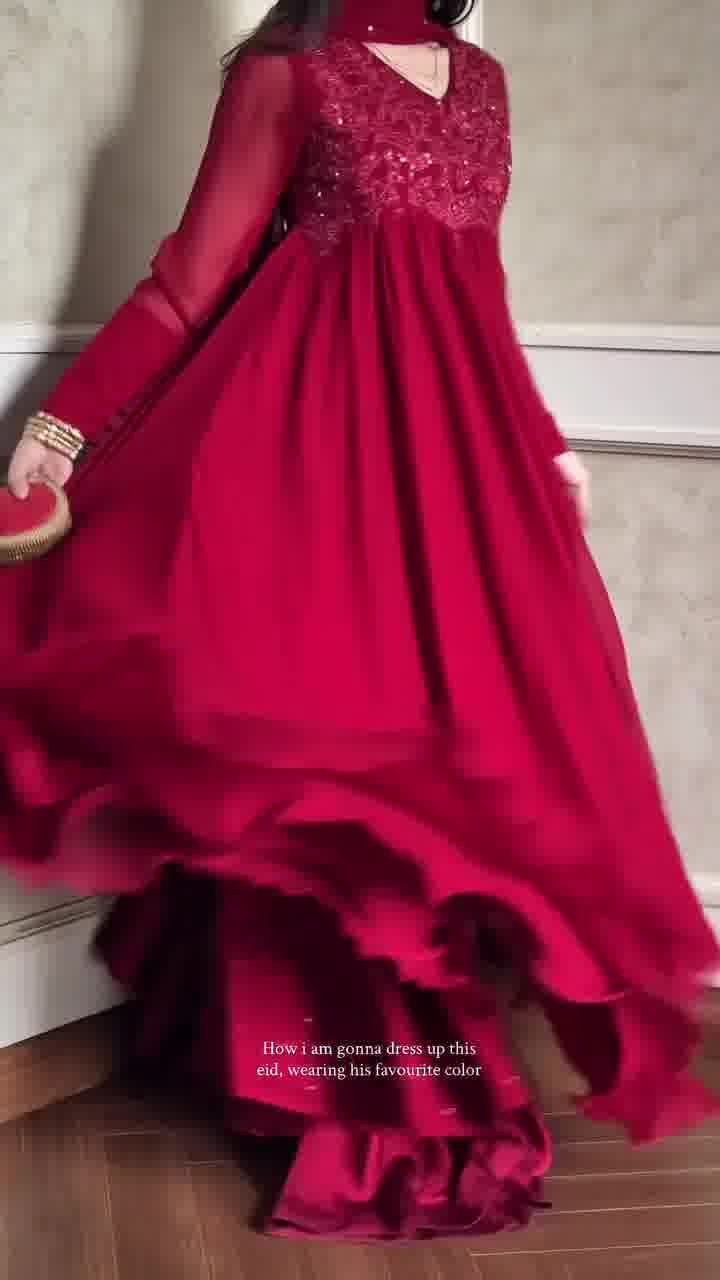 Make a bold statement this Eid with our Red Fiesta D29, a masterpiece of craftsmanship designed for the modern woman. This ready-to-wear 3-piece suit combines the rich texture of Soft Dubai Cherry fabric with intricate embroidery and shimmering sequence work, ensuring you glow at every festive gathering.